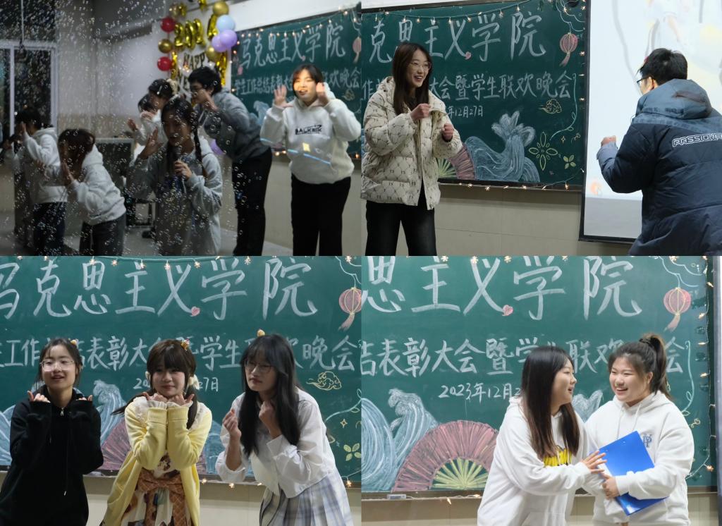 在12教204举行学生工作总结表彰大会暨元旦联欢会,院党委副书记汤慧珍、学工办主任张云雾、研究生会主席团成员何先澳及a片无码