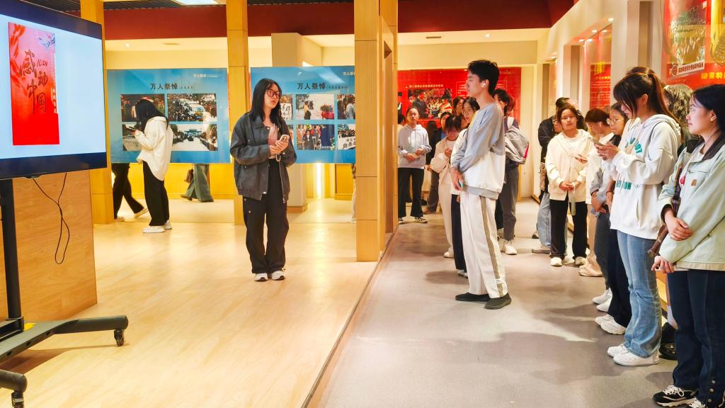 跟随讲解员的步伐,全体同学有序进入10·24纪念馆。一张张照片、一段段文字、一件件实物,无不诉说着十五年前挽救生命的英雄故事。同学们通过聆听讲解,观看纪念馆内的图文、实物与影像资料,深入了解了几位少年英雄在危急关头,见义勇为的感人故事。许多同学几度潸然泪下。思政12401班许圣同学表示:“他们勇于在危难时刻挺身而出,值得我们学习和传承。”