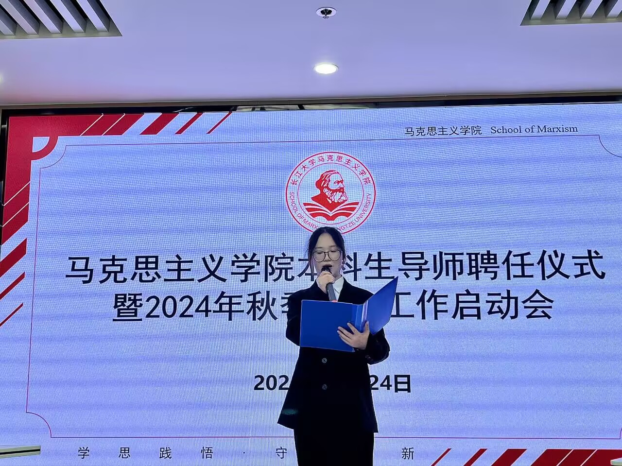 于文科楼1008室举行了本科生导师聘任仪式暨2024年秋季谈心工作启动会。会议由冯星雨主持,全体院领导、部分教师代表及各导师组学生代表参会。