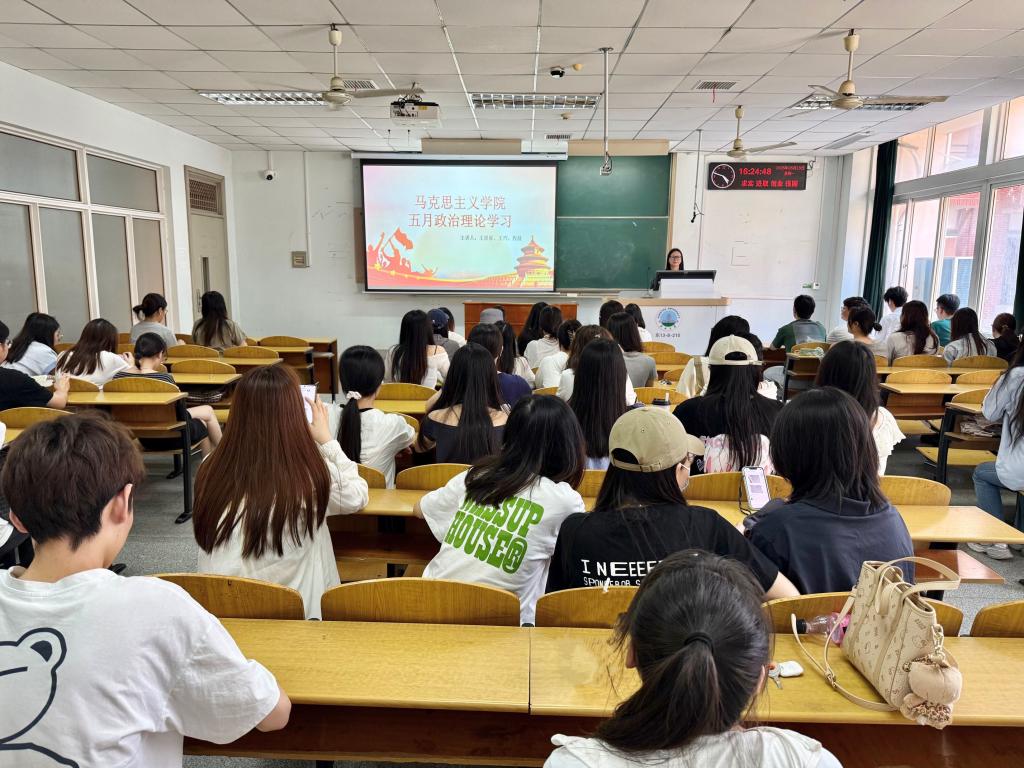 会上,同学们集中学习了习近平总书记的重要文章《激励新时代青年在中国式现代化建设中挺膺担当》、在庆祝中华全国总工会成立100周年暨全国劳动模范和先进工作者表彰大会及在全国民族团结进步表彰大会上的重要讲话精神。