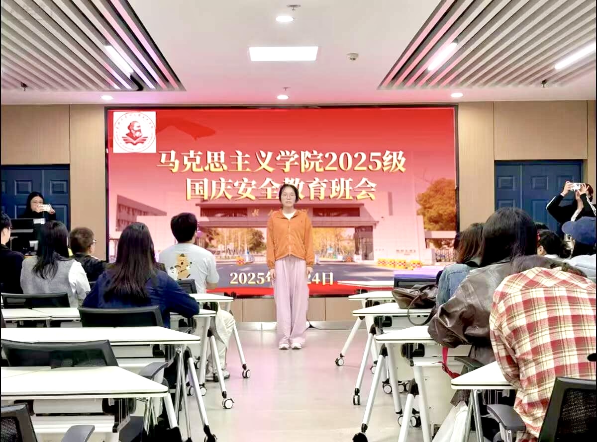 于近日组织本、研全体同学开展国庆节假前安全教育主题班会。学院党委副书记竺正海、学工办主任张云雾、辅导员邓鹏以及各班主任参加,与全院同学共同筑牢假期安全屏障。