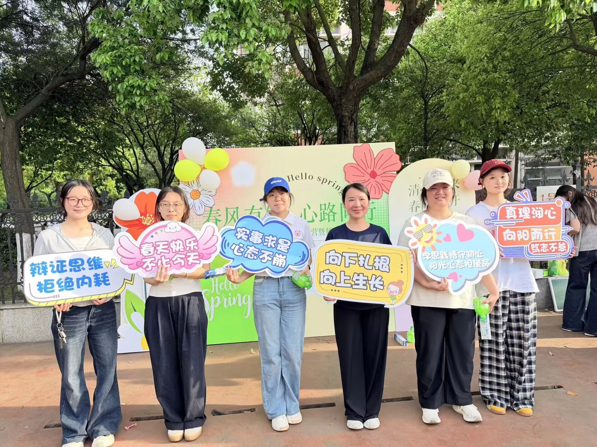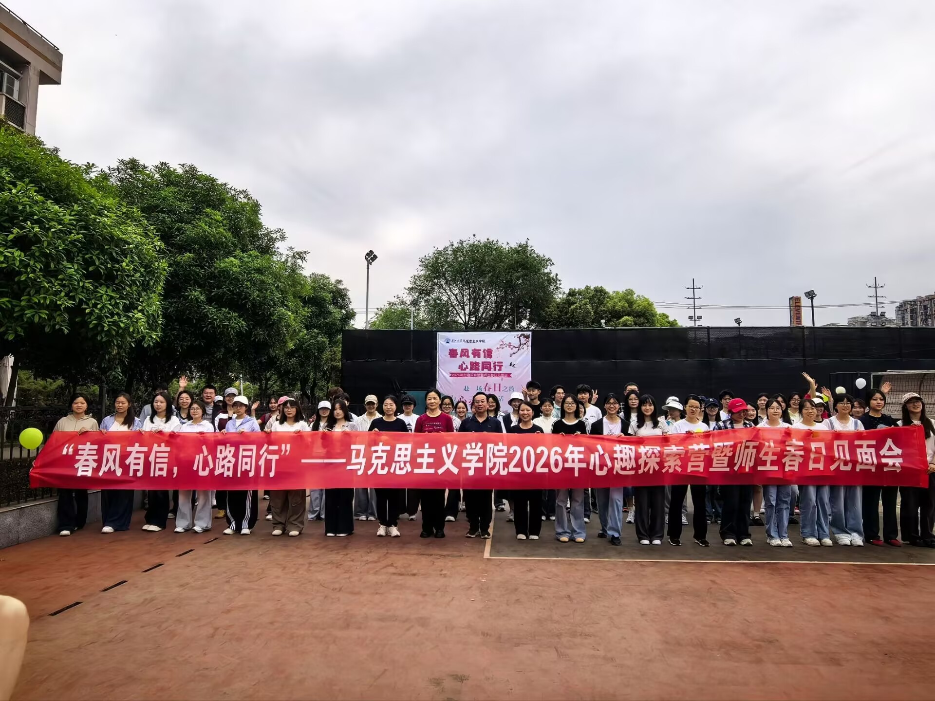 在13教旁篮球场举办“春风有信,心路同行”心趣探索营暨师生春日见面会。学院党委书记刘小燕、党委副书记竺正海、学工办主任张云雾、辅导员邓鹏、思政12401班班主任饶玲等老师与2025级全体本科生共同解锁师生互动的温暖瞬间。
