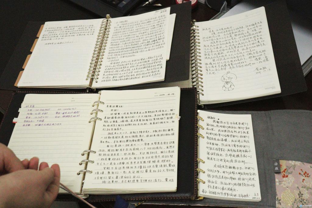 来到张云雾老师办公室,一册又一册厚厚的活页本映入眼帘。“致亲爱的雾姐”“张老师,谢谢您大学四年对我的照顾!”……张云雾用心地将毕业学生的来信整理成册。