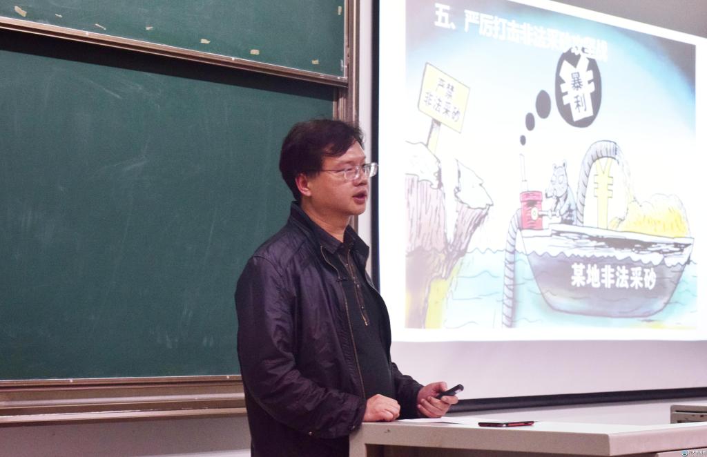 大型思政课《生命长江》第四讲在13教A203教室开讲,此次课程主题为长江生态文明建设的理论与实践。荆州市环保局沙市分局党组书记刘松和马克思学院老师肖芬荣担任课程讲师。