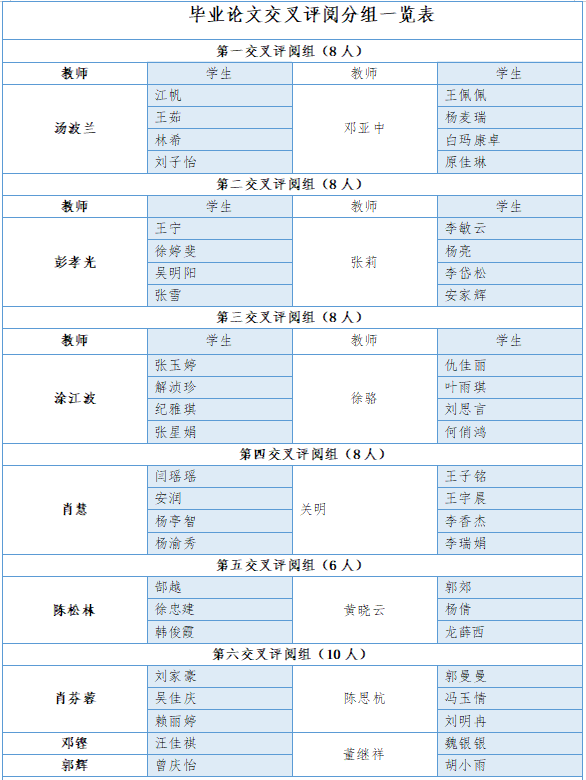 附录:毕业论文交叉评阅分组一览表