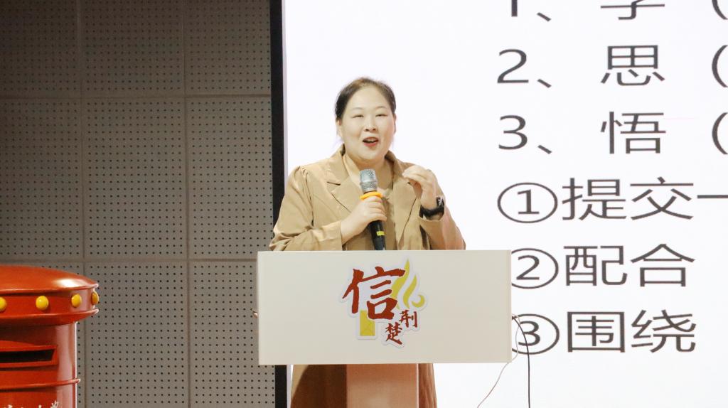 学生代表吴宇洁依次分享选修该课程的初心。在她们看来《信•荆楚》课程既是传播红色革命精神的重要窗口,也是青年学子学习党史的重要平台。她们表示将会以此次红色书信课程学习之旅为契机,赓续红色血脉,坚定理想信念,续写接力奋斗的青春故事。