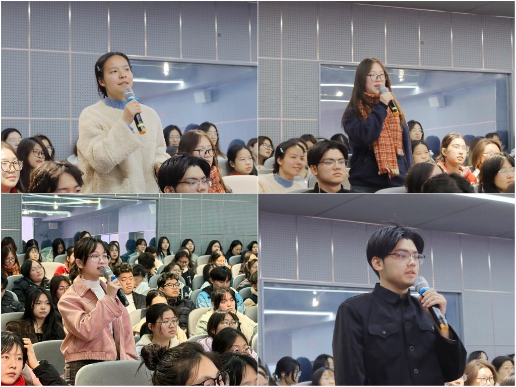 在情景演绎环节,杨耀峰、张博涵、蔡坤鹏、吴宇洁四位同学深情演绎毛主席在武汉东湖宾馆会见李达的经历,将可观可感的历史场景一一还原,让在场师生在聆听讲述时,通过“深体验”获得“深感触”,感悟毛主席殚精竭虑的工作状态和平易近人的人格力量。