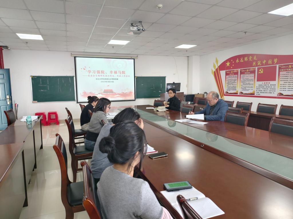 3月24日下午,a片无码 在文科楼1104室召开2025年全面从严治党暨党风廉政建设、意识形态工作专题会议。学院党委领导班子、部分党支部书记参加会议,会议由学院党委书记刘小燕主持。
