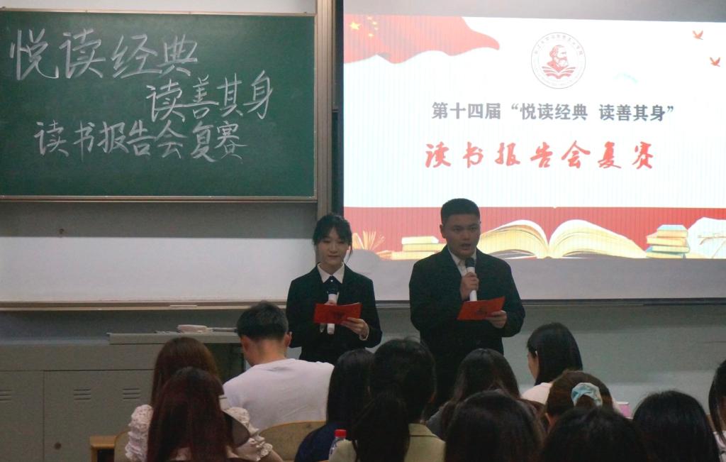 于4月16日晚7时在13教C119、C120两个会场举办第十二届“悦读经典·读善其身”读书报告会复赛。青年教师陈前燕、余晶晶、陈质晶,辅导员李敏参加比赛并担任评委。复赛全体选手及大一全体学生参加活动。