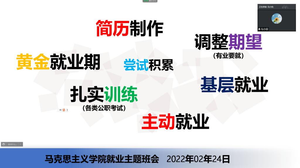响应招硕引博政策引导学生扎根荆州奉献荆州促进学生高质充分就业,学院于2月24日下午通过腾讯会议开展了荆州“招硕引博”宣传推进会。学院党委副书记马小佼、就业专干李敏和全体研究生毕业生参加会议。